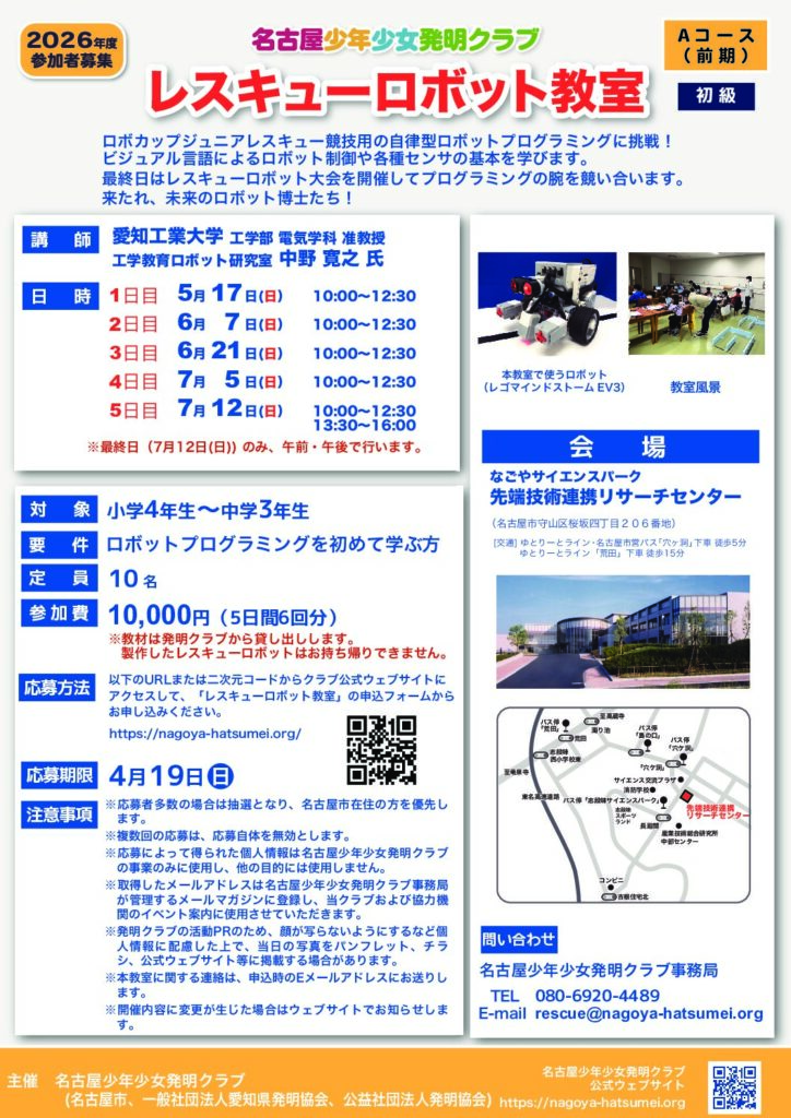 2026年度レスキューロボット教室(Aコース・前期)の募集を開始しました。